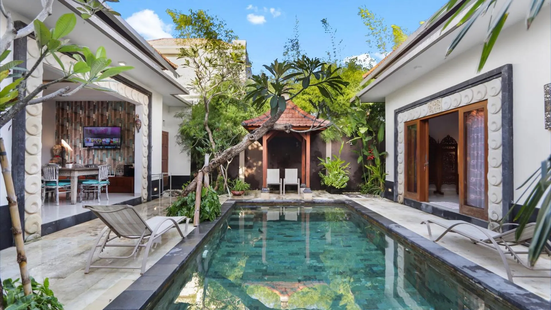 Oltre a servizi di self-catering come una cucina completamente attrezzata, questa villa offre anche una zona pranzo e una zona pranzo all'aperto. Gli ospiti possono inoltre usufruire di un microonde, un bollitore elettrico e utensili da cucina per preparare i propri pasti. Il ristorante Soul in a Bowl, che serve piatti salutari, si trova a pochi passi dall'alloggio. L'aeroporto Internazionale Ngurah Rai dista 15 km da questo luogo, mentre la fermata dell'autobus Halte Trans Sarbagita si trova a circa 15 minuti a piedi. La villa dispone di una lounge condivisa per rilassarsi dopo una giornata intensa e di una piscina privata. Gli ospiti possono noleggiare biciclette e auto per esplorare la zona o concedersi il massimo relax con un massaggio corpo completo, un massaggio alla testa e dei massaggi alla schiena. Per far divertire i bambini, l'alloggio offre giochi e giochi da tavolo.